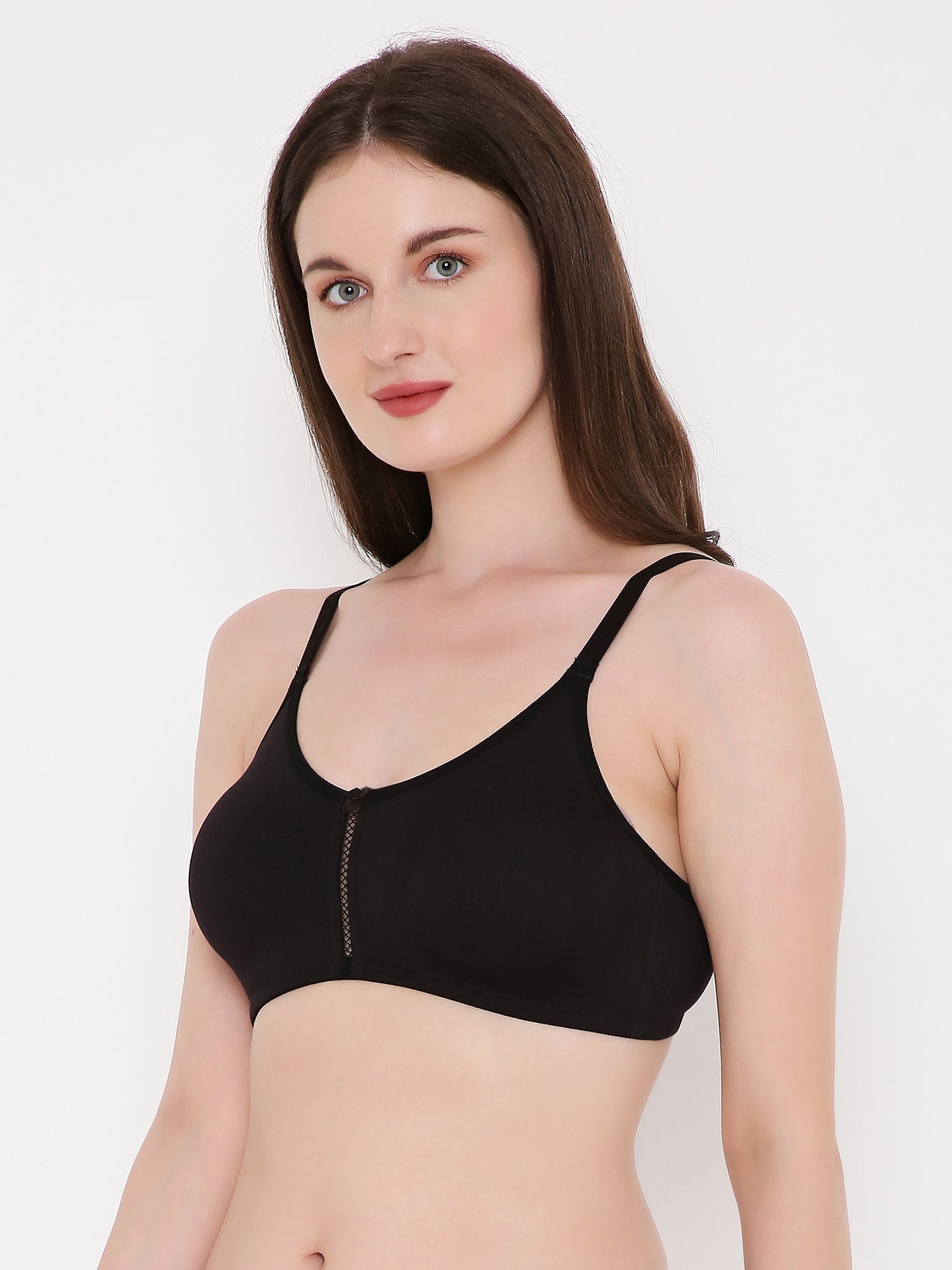 Berry's Intimatess Black Center Net Seamless Comfort T-Shirt Bra - Non-Padded, Non-Wired