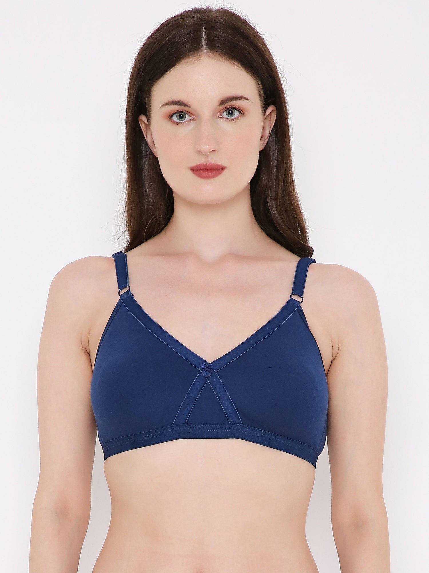 Berry's Intimatess Navy Blue Criss Cross Comfort T-Shirt Bra - Seamless, Non-Padded, Non-Wired.