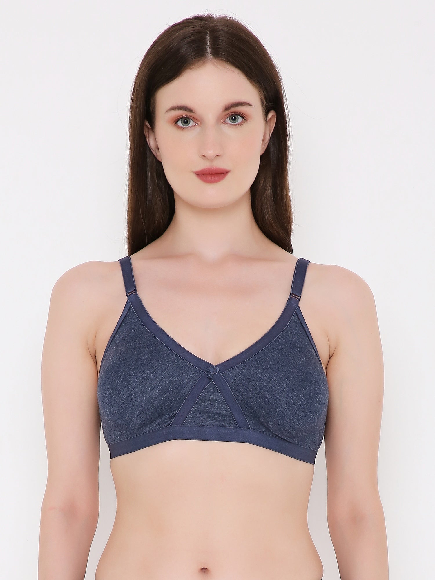 Berry's Intimatess Navy Blue Melange Criss Cross Comfort T-Shirt Bra - Seamless, Non-Padded, Non-Wired.