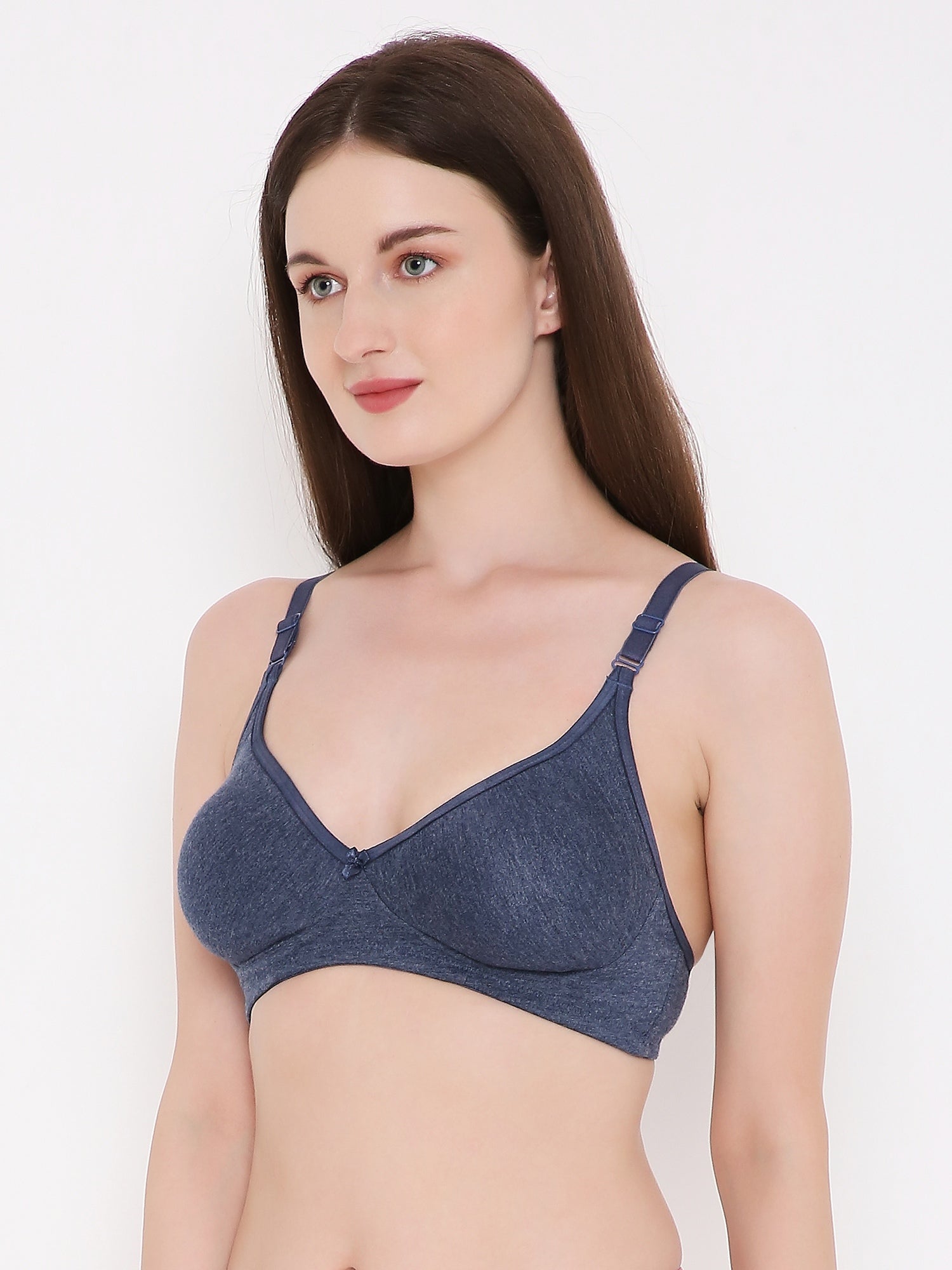 Berry's Intimatess Navy Blue Melange Side Concealer Seamless Comfort T-Shirt Bra - Non-Padded, Non-Wired