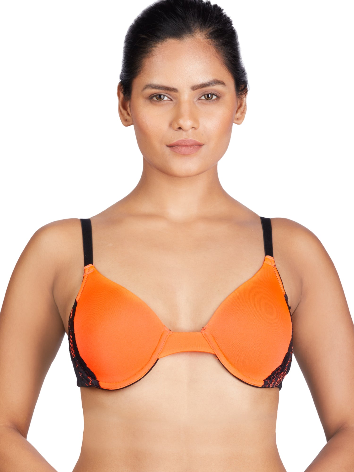 Berry's Intimatess Orange & Black color Underwired & Heavily Padded with Medium Coverage Push-Up Bra