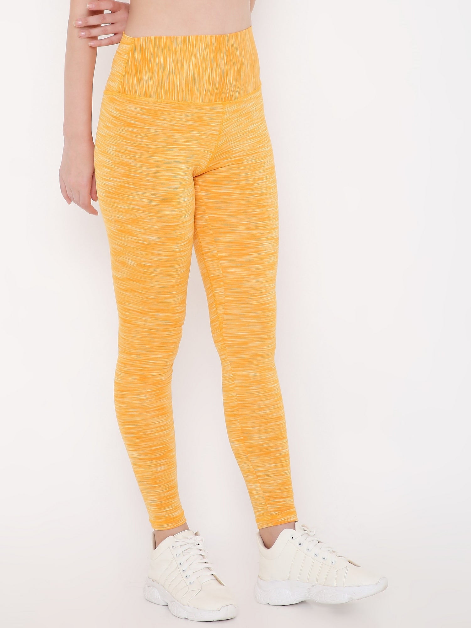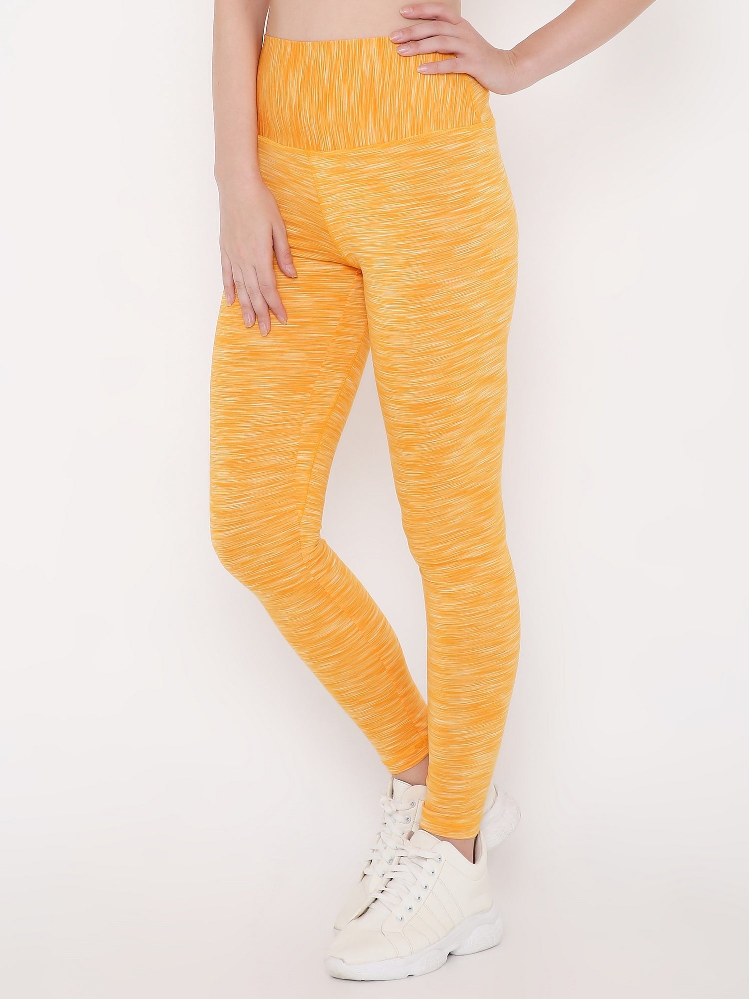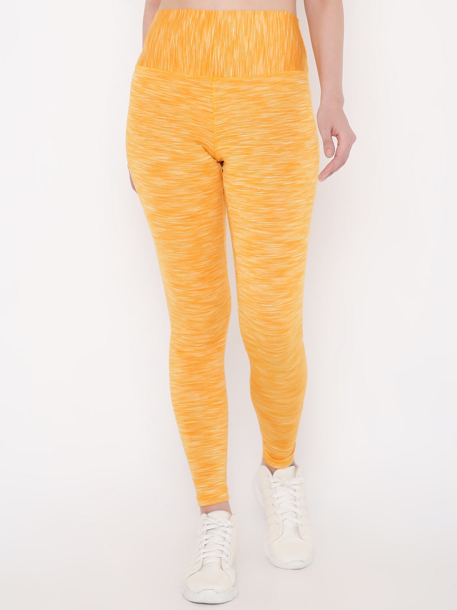 Berrys Intimatess Yellow Milange Colour Ankle Length Self Design Sports Leggings